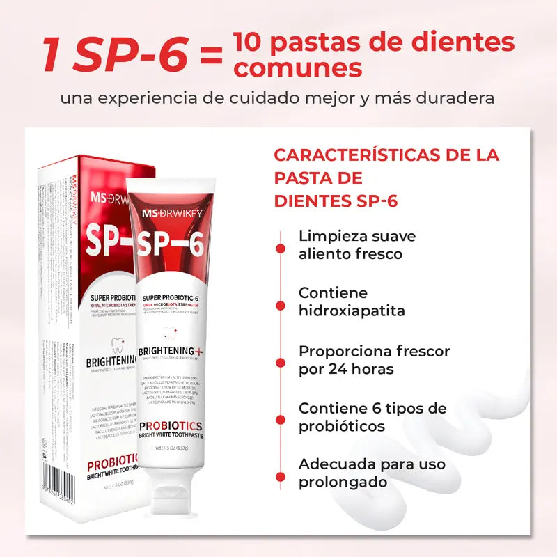 Las pastas comunes limpian… pero esta protege. Con seis cepas de probióticos, la MSDRWIKEY combate las bacterias que causan mal aliento, gingivitis y caries desde su origen. Su fórmula avanzada fortalece las defensas naturales de tu boca y deja un frescor mentolado que renueva cada respiración. Es salud, limpieza y equilibrio, todo en un solo tubo.
