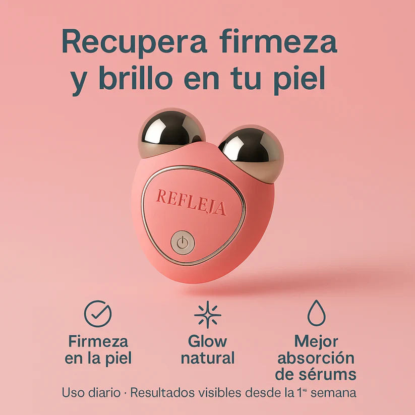Refleja GlowLift es el impulso que tu piel necesitaba. Su tecnología de microcorrientes estimula la producción natural de colágeno y elastina, ayudando a que el rostro recupere su firmeza, suavidad y elasticidad desde las primeras sesiones.
